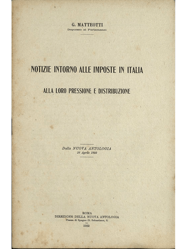 In questa sezione pubblichiamo integralmente, digitalizzati in gran parte dalle edizioni originali, libri, scritti e interventi di Giacomo Matteotti (lavori giuridici, discorsi parlamentari, saggi di argomento politico e sociale), valutazioni e commenti sulla sua figura, nonché gli studi di economia politica del fratello maggiore Matteo, che esercitò su Giacomo un grande influsso, e le opere letterarie della moglie Velia Titta.